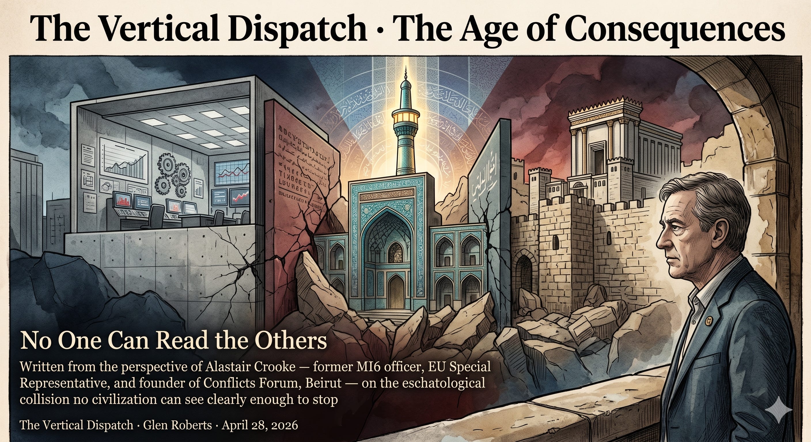 #TheVerticalDispatch #TheAgeOfConsequences #AlastairCrooke #GlenRoberts #Eschatology #Geopolitics #MiddleEastConflict #Iran #Israel #USA #WesternMindset #CivilizationalCollision #AbrahamicFaiths #Tribalism #UniversalGod #IntelligenceFailure #ConflictsForum #Diplomacy #TheologyAndPolicy #NoOneCanReadTheOthers #Messianism #Dispensationalism #PoliticalAnalysis #EndTimesTheology