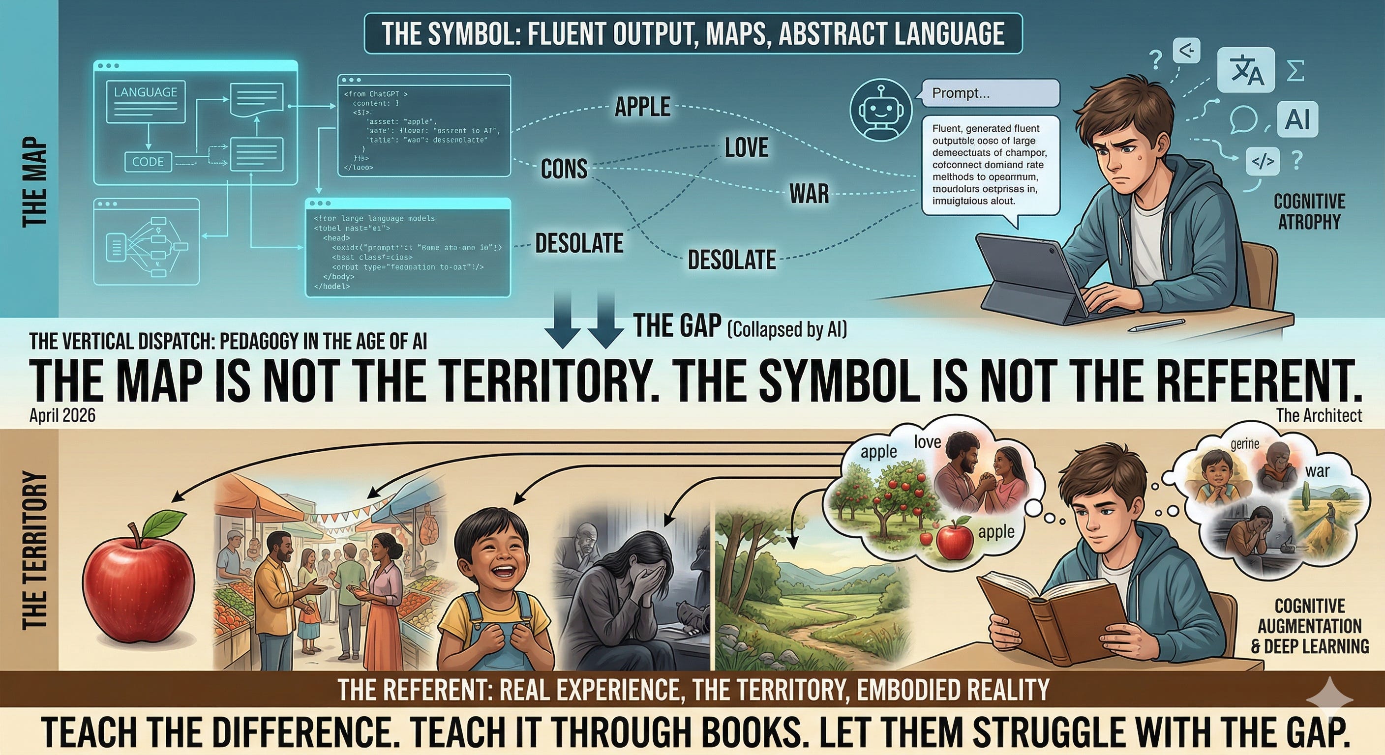 #Pedagogy #AIinEducation #SymbolAndReferent #TheMapIsNotTheTerritory #LiteracyCrisis #ReadingMatters #TeachThemToRead #CriticalThinking #HumanMind #EducationReform #AILiteracy #DeepReading #CognitiveDevelopment #ChildhoodLiteracy #SchoolsWorldwide #TeacherTraining #OECDEducation #GenerativeAI #LearningNotOutput #MindBuilding #TheVerticalDispatch #TheArchitect #UniversalDynamics #FoundationalSkills #EduTwitter #FutureOfEducation #WhatSchoolIsFor #SemioticsMatters #Korzybski #ReadingBrain #AIandChildren #ScreenTime #BooksMatter #ThinkDeeply #CognitionNotCompletion