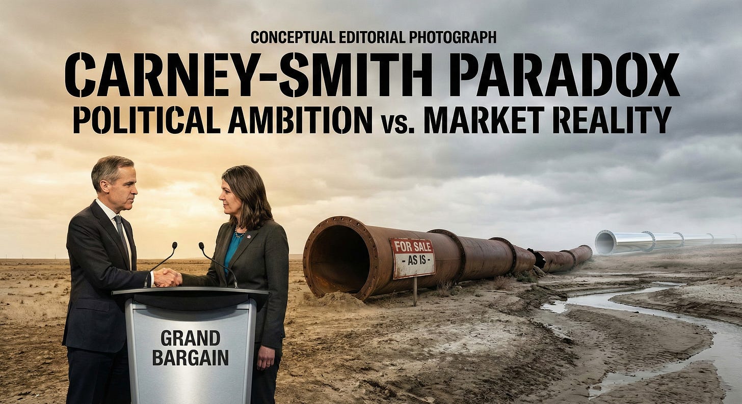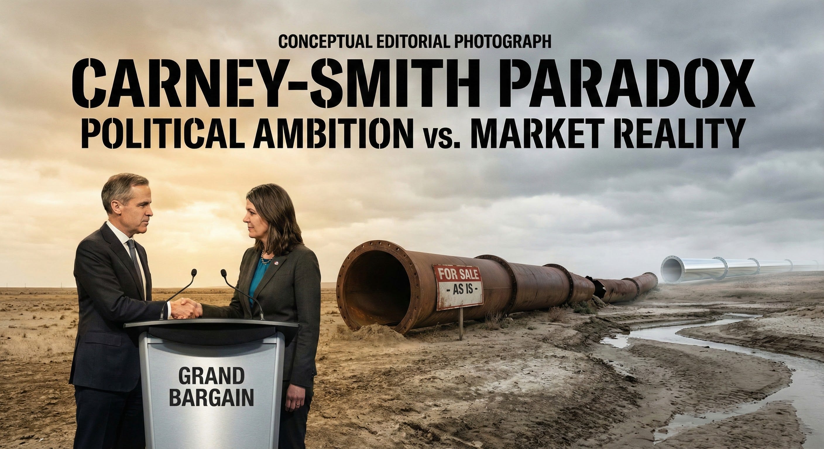 This report evaluates the recent “Grand Bargain” struck between Mark Carney (Federal) and Danielle Smith (Alberta). While politically celebrated as a breakthrough for national unity and energy development, a forensic economic analysis reveals a fatal contradiction at the heart of the agreement.