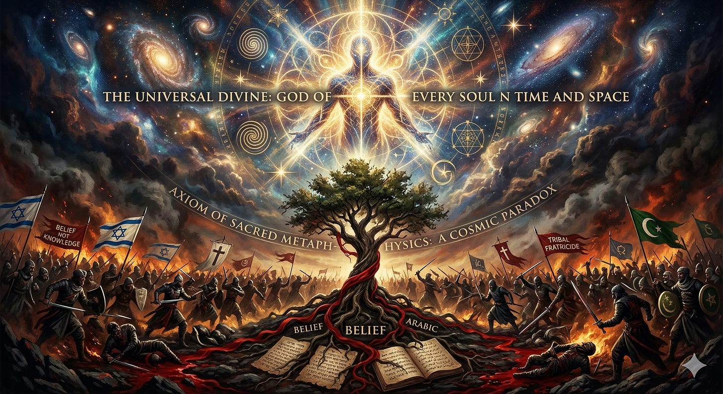 This brings us to the core contradiction: the Axiom of Sacred Metaphysics. Logic dictates that if a supreme “God” exists, that entity must be the God of every soul, across all time and all space. By definition, a universal creator cannot be a “tribal” deity.