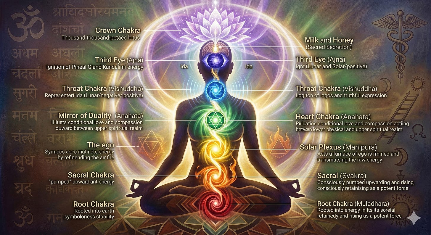 #ChakraAlchemy #KundaliniAwakening #SacredSecretion #InternalAlchemy #Metaphysics #EsotericWisdom #SpiritualGrowth #PinealGland #SacredGeometry #Hermeticism #UniversalLaw #AncientWisdom #MindBodySpirit #EnergyHealing #YogaPhilosophy #DivineMasculine #DivineFeminine #SelfDiscipline #Ojas #Bindu #OccultKnowledge #SpiritualEvolution #TheGreatWork #Christos #AlchemicalMarriage #ConsciousnessExpansion #SelfMastery #VagusNerve #SpiritualAnatomy #SubstackWriters