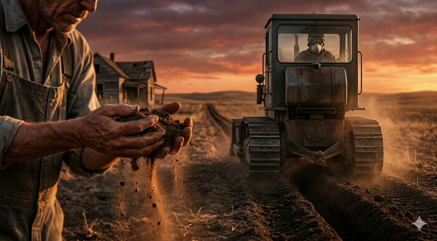 And cuts you off forever from the we. From the Atman that is the same in every consciousness. From the ground that was there before the first deed was written. From the living frequency that the tenant farmer’s hands were touching when he crumbled the hot clod and let the earth sift past his fingertips.
