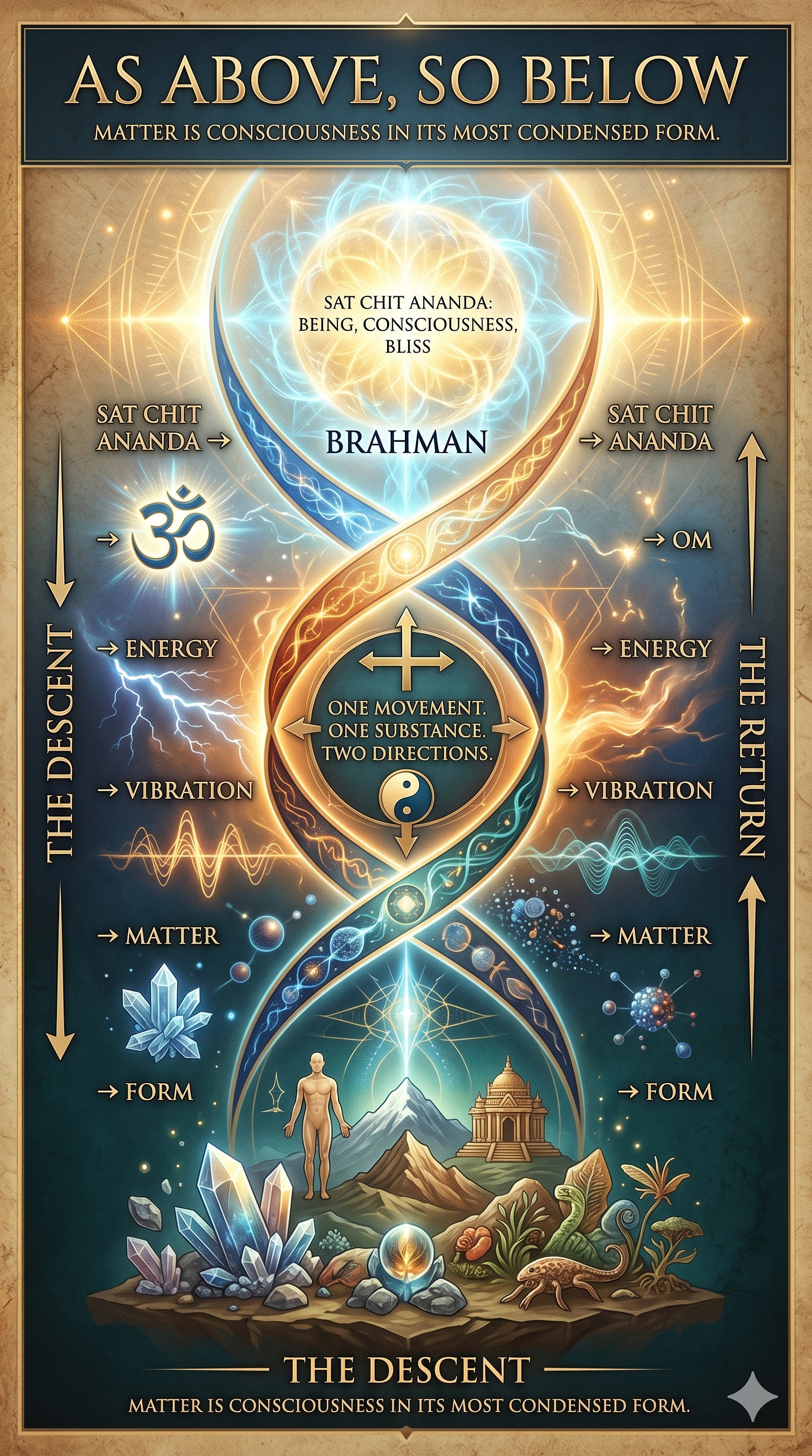 ↑ Form → Matter → Vibration → Energy → Om → Brahman → Sat Chit Ananda